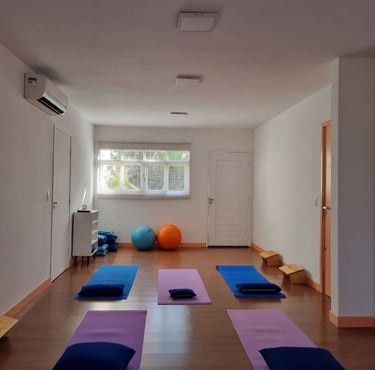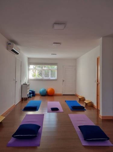 Espaço de aprendizado e prática de Yoga presencial, que também está disponível em formato digital.